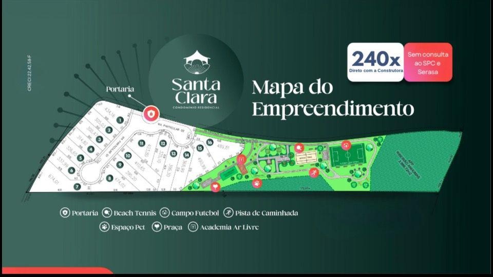 Condomínio Santa Clara Viva Conforto, segurança e contato com a natureza em um só lugar. O Santa Clara Viva é um condomínio fechado com apenas 16 terrenos exclusivos, com o projeto da casa a ser construído embutido no valor já, ideal para quem busca tranquilidade, privacidade e qualidade de vida.