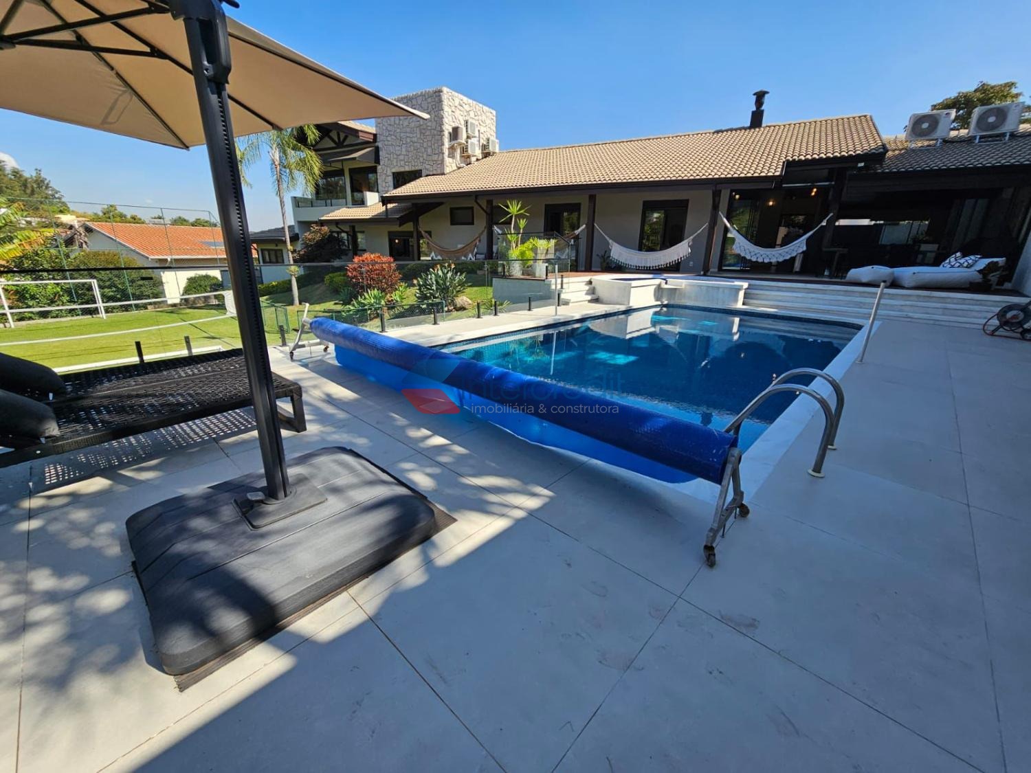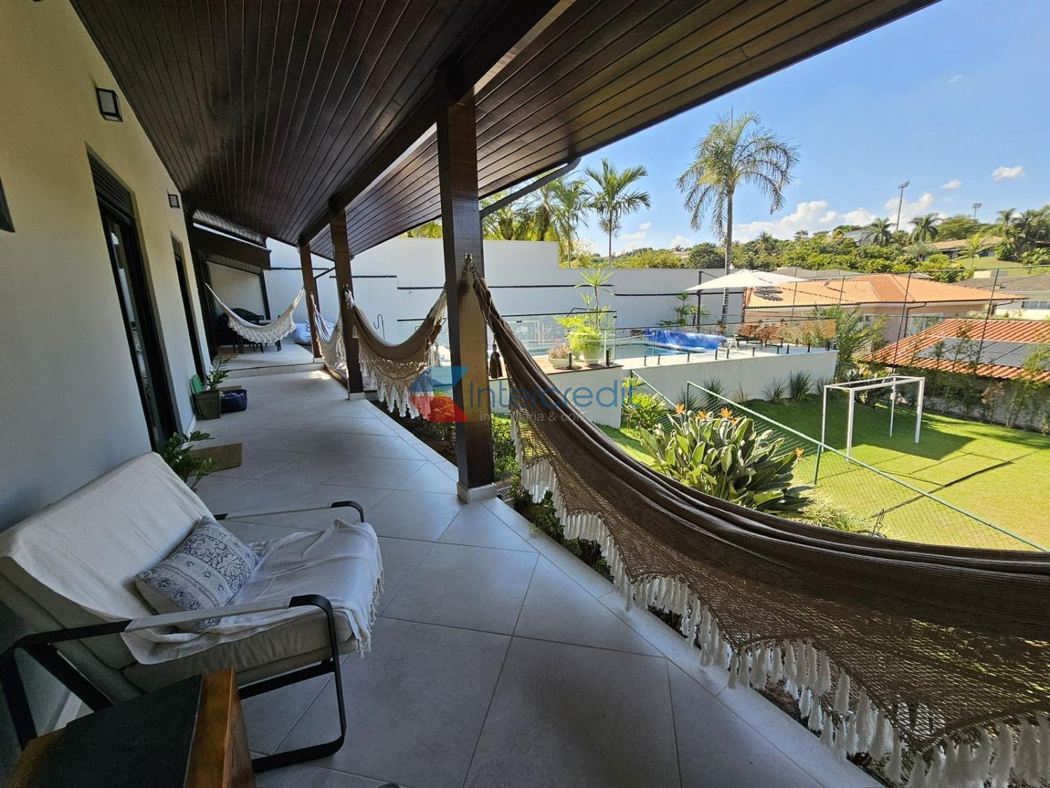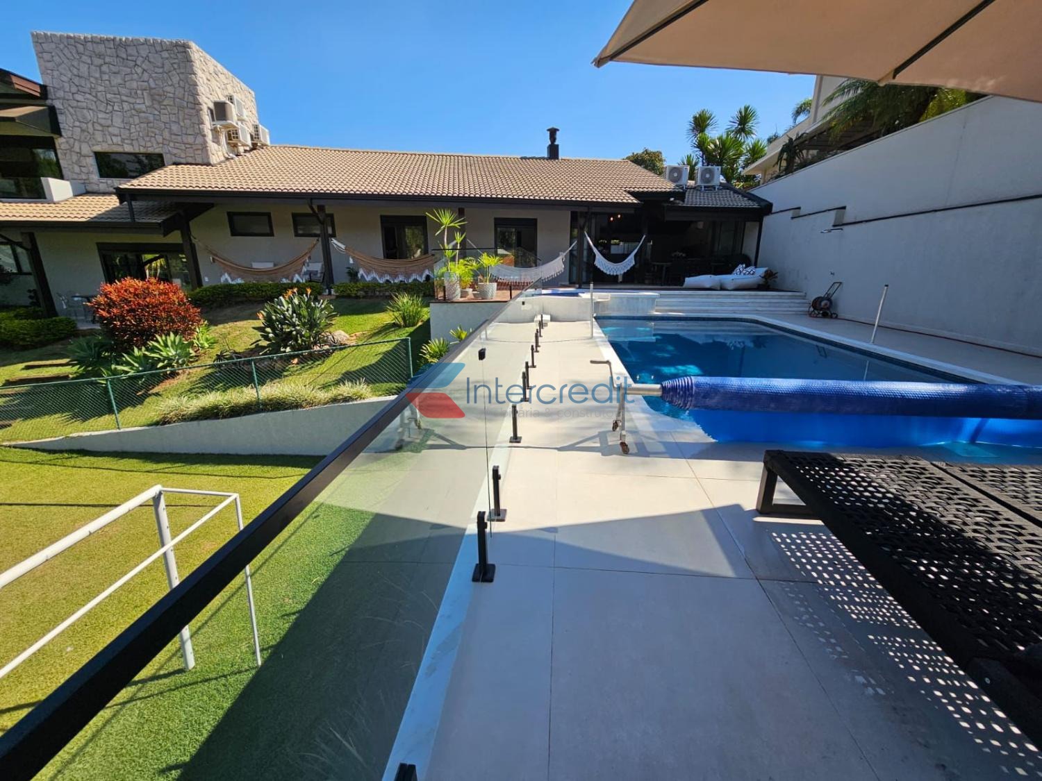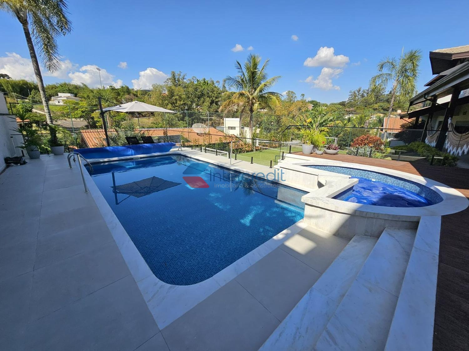 A área externa da casa é simplesmente sensacional com vista para área de preservação ambiental, contendo charmoso espaço gourmet e linda piscina adulto e infantil aquecida.