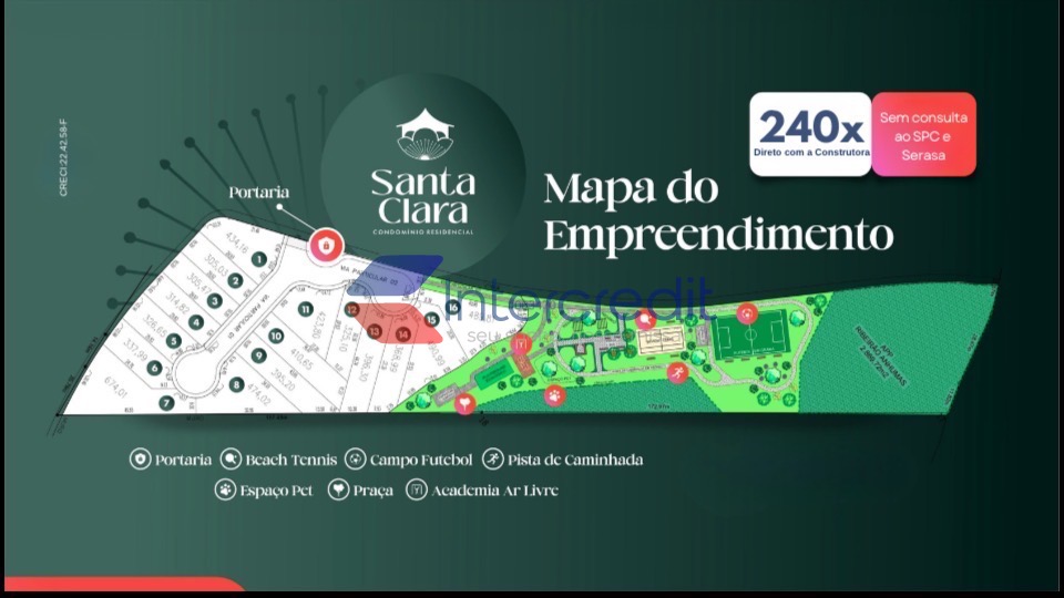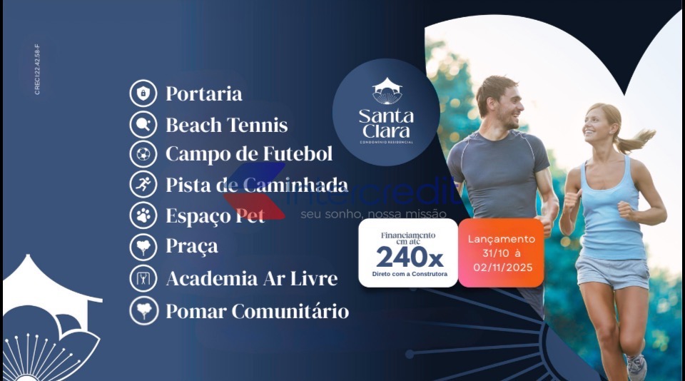 Condomínio Santa Clara Viva Conforto, segurança e contato com a natureza em um só lugar. O Santa Clara Viva é um condomínio fechado com apenas 16 terrenos exclusivos, com o projeto da casa a ser construído embutido no valor já, ideal para quem busca tranquilidade, privacidade e qualidade de vida.